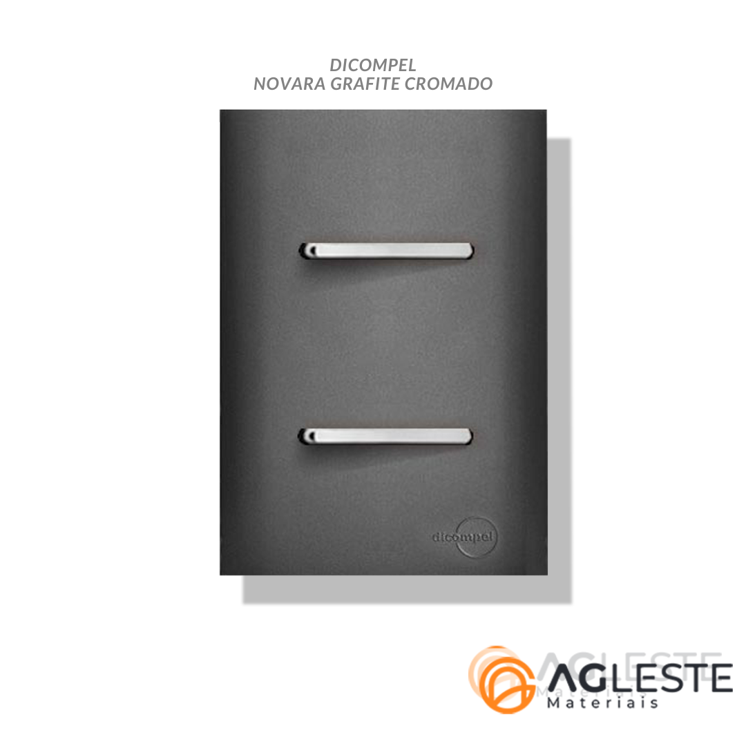 ANUNCIO CONTÉM: 1. CJ INTERRUPTOR DUPLO SIMPLES COM SUPORTE 4X2 - DICOMPEL NOVARA PRETO GRAFITE CROMADO - DNV1600/5PGCR OU SEJA: 1 . PLACA P/ 2 INTERRUPTORES COM SUPORTE 4X2 - DICOMPEL NOVARA PRETO GRAFITE - DNV1600/64PG 2. MODULO INTERRUPTOR SIMPLES - DICOMPEL NOVARA CROMADO - DNV1200/34CR DETALHES DO PRODUTO: Com um design fantástico, minimalista e de fácil instalação a DICOMPEL inovou no mercado de tomadas e interruptores modulares. A linha novara conta com uma pintura cromada automotiva, assim não descasca e nem perde sua cor. Seus interruptores, pulsadores, conjugados e tomadas dão 5 anos de garantia. SEMPRE TEM UMA NOVARA QUE COMBINA COM O QUE VOCÊ DESEJA;