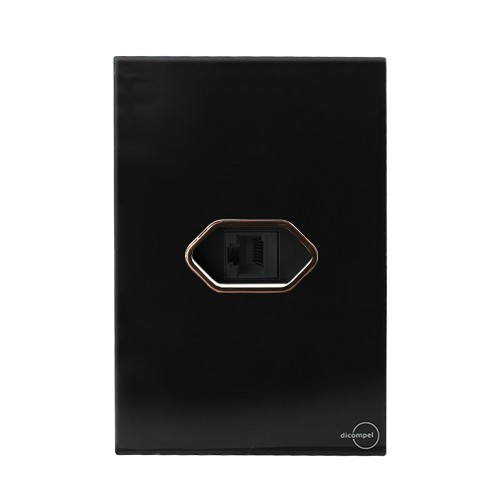 ANUNCIO CONTÉM: 1. CJ ENTRADA RJ45 ( INTERNET ) COM SUPORTE 4X2 - DICOMPEL NOVARA GLASS PRETO BRILHANTE / OURO ROSE - DNG1700/41PBOR OU SEJA: 1. PLACA P/ 1 TOMADA HORIZONTAL COM SUPORTE 4X2 - DICOMPEL NOVARA GLASS PRETO BRILHANTE - DNGP-40000/16 1. MODULO RJ45 ( INTERNET ) - DICOMPEL NOVARA PRETO BRILHANTE C/ OURO ROSE - DNV1700/282PBOR DETALHES DO PRODUTO: Com um design fantástico, minimalista e de fácil instalação a DICOMPEL inovou no mercado de tomadas e interruptores modulares. A linha novara conta com uma pintura cromada automotiva, assim não descasca e nem perde sua cor. Seus interruptores, pulsadores, conjugados e tomadas dão 5 anos de garantia. SEMPRE TEM UMA NOVARA QUE COMBINA COM O QUE VOCÊ DESEJA;