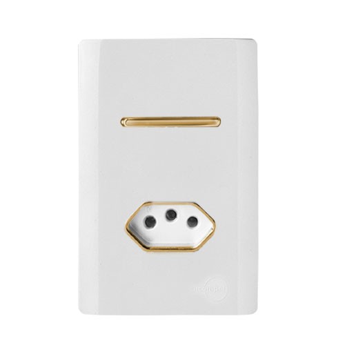 ANUNCIO CONTÉM: 1. CJ INTERRUPTOR PARALELO + TOMADA 10A COM SUPORTE 4X2 - DICOMPEL NOVARA BRANCO GOLD - DNV1200/20BRGD OU SEJA: 1 . PLACA P/ 1 INTERRUPTOR + TOMADA COM SUPORTE 4X2 - DICOMPEL NOVARA BRANCO - DNV1100/78BR 1. MODULO INTERRUPTOR PARALELO - DICOMPEL NOVARA GOLD - DNV1200/158GD 1 . MODULO TOMADA 10A - DICOMPEL NOVARA BRANCO GOLD - DNV1200/164GD DETALHES DO PRODUTO: Com um design fantástico, minimalista e de fácil instalação a DICOMPEL inovou no mercado de tomadas e interruptores modulares. A linha novara conta com uma pintura cromada automotiva, assim não descasca e nem perde sua cor. Seus interruptores, pulsadores, conjugados e tomadas dão 5 anos de garantia. SEMPRE TEM UMA NOVARA QUE COMBINA COM O QUE VOCÊ DESEJA;