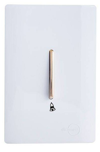 ANUNCIO CONTÉM: 1 . CJ INTERRUPTOR PULSADOR DE CAMPAINHA VERTICAL 4X2 - DICOMPEL NOVARA BRANCO GOLD - DNV1200/17BRGD OU SEJA: 1. PLACA P/ 1 INTERRUPTOR VERTICAL COM SUPORTE 4X2 - DICOMPEL NOVARA BRANCO - DNV1100/62BR 1. MODULO INTERRUPTOR PULSANTE - DICOMPEL NOVARA GOLD - DNV1200/159GD DETALHES DO PRODUTO: Com um design fantástico, minimalista e de fácil instalação a DICOMPEL inovou no mercado de tomadas e interruptores modulares. A linha novara conta com uma pintura cromada automotiva, assim não descasca e nem perde sua cor. Seus interruptores, pulsadores, conjugados e tomadas dão 5 anos de garantia. SEMPRE TEM UMA NOVARA QUE COMBINA COM O QUE VOCÊ DESEJA;