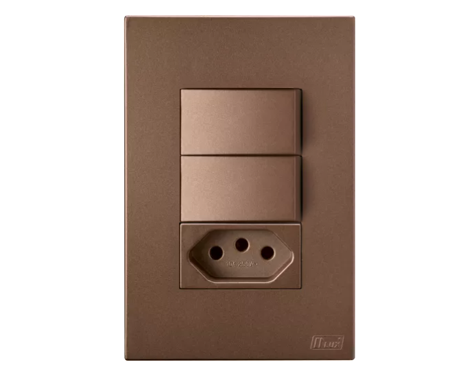 1 - CJ INTERRUPTOR DUPLO SIMPLES + TOMADA 10A COM SUPORTE 4X2 - RECTA COBRE CORTEN SATIN FOSCO - BRS16331-7CC