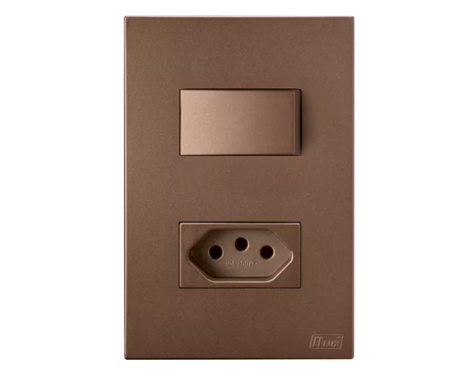 1 - CJ INTERRUPTOR PARALELO + TOMADA 20A COM SUPORTE 4X2 - RECTA COBRE CORTEN SATIN FOSCO - BRS16330-9CC