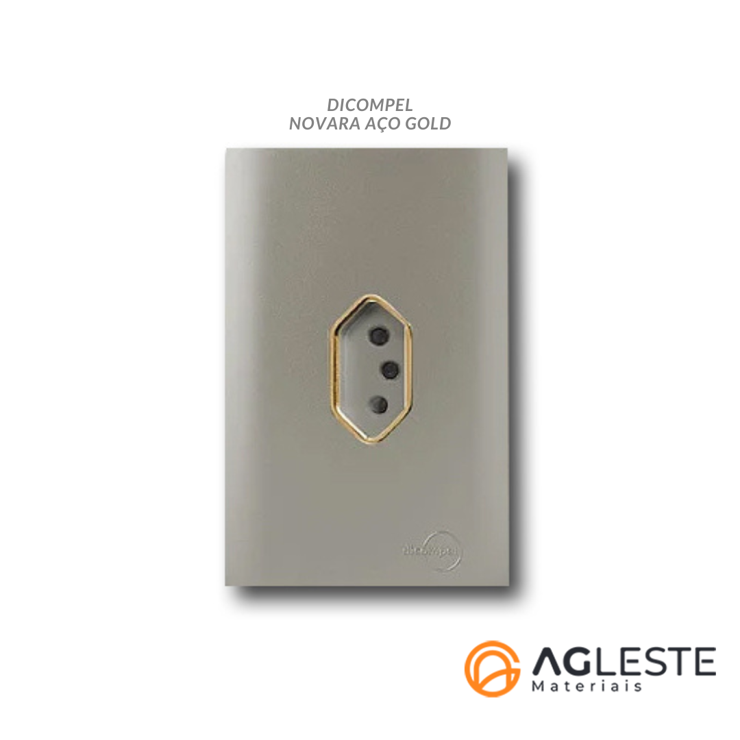 ANUNCIO CONTÉM: 1. CJ TOMADA 20A VERTICAL COM SUPORTE 4X2 - DICOMPEL NOVARA AÇO GOLD - DNV1500/13ACGD OU SEJA: 1. PLACA P/ 1 TOMADA VERTICAL COM SUPORTE 4X2 - DICOMPEL NOVARA AÇO - DNV1500/66AC 1 . MODULO TOMADA 20A - DICOMPEL NOVARA AÇO GOLD - DNV1500/165ACGD DETALHES DO PRODUTO: Com um design fantástico, minimalista e de fácil instalação a DICOMPEL inovou no mercado de tomadas e interruptores modulares. A linha novara conta com uma pintura cromada automotiva, assim não descasca e nem perde sua cor. Seus interruptores, pulsadores, conjugados e tomadas dão 5 anos de garantia. SEMPRE TEM UMA NOVARA QUE COMBINA COM O QUE VOCÊ DESEJA;