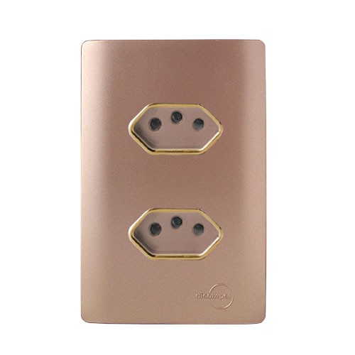 ANUNCIO CONTÉM: 1. CJ TOMADA DUPLA 10A COM SUPORTE 4X2 - DICOMPEL NOVARA OURO ROSE/ OURO ROSE - DNV1500/32OROR OU SEJA: 1. PLACA P/ 2 TOMADAS COM SUPORTE 4X2 - DICOMPEL NOVARA OURO ROSE - DNV1500/68OR 2. MODULO TOMADA 10A - DICOMPEL NOVARA OURO ROSE/ OURO ROSE - DNV1500/274OROR DETALHES DO PRODUTO: Com um design fantástico, minimalista e de fácil instalação a DICOMPEL inovou no mercado de tomadas e interruptores modulares. A linha novara conta com uma pintura cromada automotiva, assim não descasca e nem perde sua cor. Seus interruptores, pulsadores, conjugados e tomadas dão 5 anos de garantia. SEMPRE TEM UMA NOVARA QUE COMBINA COM O QUE VOCÊ DESEJA;
