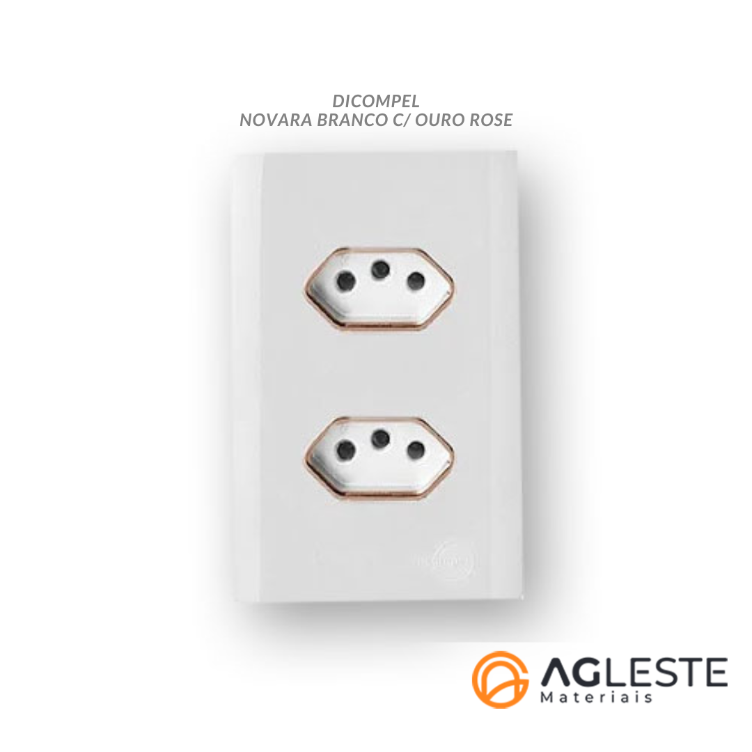 ANUNCIO CONTÉM: 1 - CJ TOMADA DUPLA 20A COM SUPORTE 4X2 - DICOMPEL NOVARA BRANCO C/ OURO ROSE - DNV1200/33BROR OU SEJA: 2 - MODULO TOMADA 20A - DICOMPEL NOVARA BRANCO C/ OURO ROSE - DNV1500/275BROR 1 -PLACA P/ 2 TOMADAS HORIZONTAIS COM SUPORTE 4X2 - DICOMPEL NOVARA BRANCO - DNV1100/68BR DETALHES DO PRODUTO: Com um design fantástico, minimalista e de fácil instalação a DICOMPEL inovou no mercado de tomadas e interruptores modulares. A linha novara conta com uma pintura cromada automotiva, assim não descasca e nem perde sua cor. Seus interruptores, pulsadores, conjugados e tomadas dão 5 anos de garantia. SEMPRE TEM UMA NOVARA QUE COMBINA COM O QUE VOCÊ DESEJA;