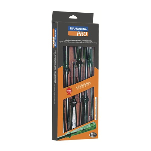 ANUNCIO CONTÉM: 1.JOGO DE CHAVES DE FENDA PROFISSIONAL AÇO CROMO 6 PEÇAS - TRAMONTINA PRO - 44115/406 DETALHES DO PRODUTO: Seja em manutenções industriais ou automotivas, apertar ou afrouxar parafusos se torna mais fácil com a ajuda das Chaves Easygrip da Tramontina PRO. Seu cabo com formato sextavado proporciona maior conforto e agilidade na utilização. Estão disponíveis com ponta chata, cruzada, trafix, trafix PZ e canhão nos modelos tradicional, toco e com isolação. Escolha o tamanho ideal para o seu trabalho e mãos à obra.