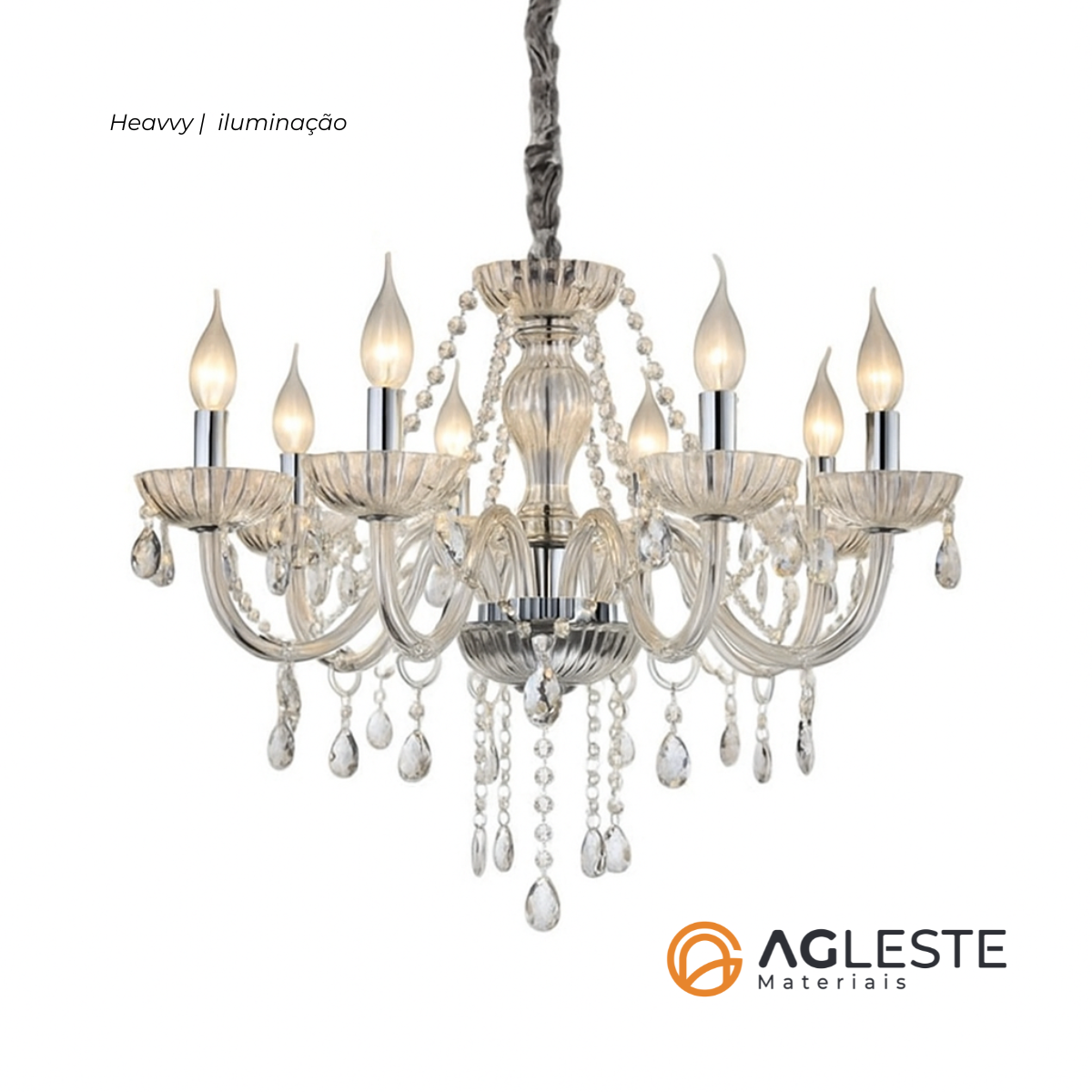 ✔️ 1x Lustre Valentina Transparente com 8 Braços – Hevvy SL-5834/H8CLEAR