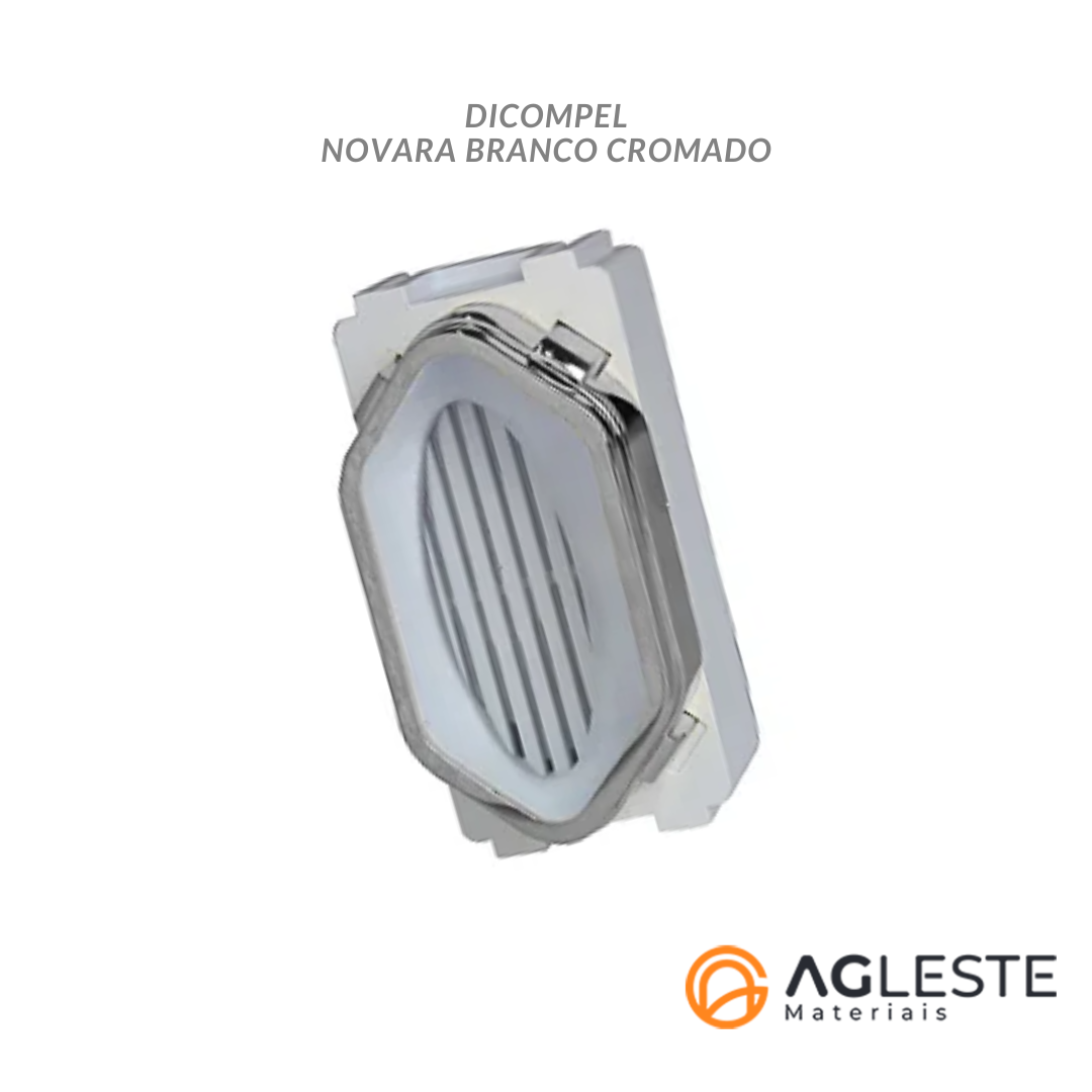 ANUNCIO CONTÉM: 1. MODULO CIGARRA ( CAMPAINHA ) - DICOMPEL NOVARA PRATA CROMADO - DNV1300/570PRCR DESCRIÇÃO DO PRODUTO: Com um design fantástico, minimalista e de fácil instalação a DICOMPEL inovou no mercado de tomadas e interruptores modulares. A linha novara conta com uma pintura cromada automotiva, assim não descasca e nem perde sua cor. Seus interruptores, pulsadores, conjugados e tomadas dão 5 anos de garantia. SEMPRE TEM UMA NOVARA QUE COMBINA COM O QUE VOCÊ DESEJA;