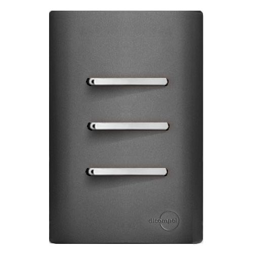1. PLACA P/ 3 INTERRUPTORES COM SUPORTE 4X2 - DICOMPEL NOVARA PRETO GRAFITE - DNV1600/65PG