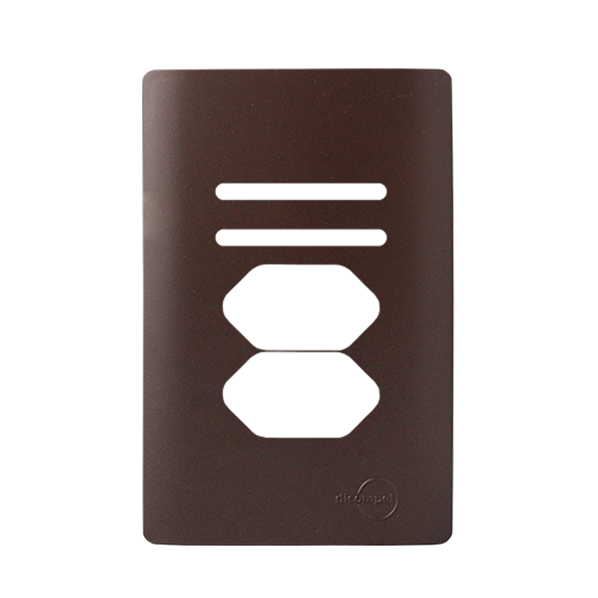 ANUNCIO CONTÉM: 1. PLACA P/ 2 INTERRUPTORES + 2 TOMADAS COM SUPORTE (ESPECIAL) 4X2 - DICOMPEL NOVARA MARROM FOSCO - DNV1500/192MF DETALHES DO PRODUTO: OBS: PARA COMPOR UM CONJUNTO É NECESSARIO EFETUAR A COMPRA DE MODULOS DUPLOS (ESPECIAIS) Com um design fantástico, minimalista e de fácil instalação a DICOMPEL inovou no mercado de tomadas e interruptores modulares. A linha novara conta com uma pintura cromada automotiva, assim não descasca e nem perde sua cor. Seus interruptores, pulsadores, conjugados e tomadas dão 5 anos de garantia. SEMPRE TEM UMA NOVARA QUE COMBINA COM O QUE VOCÊ DESEJA;