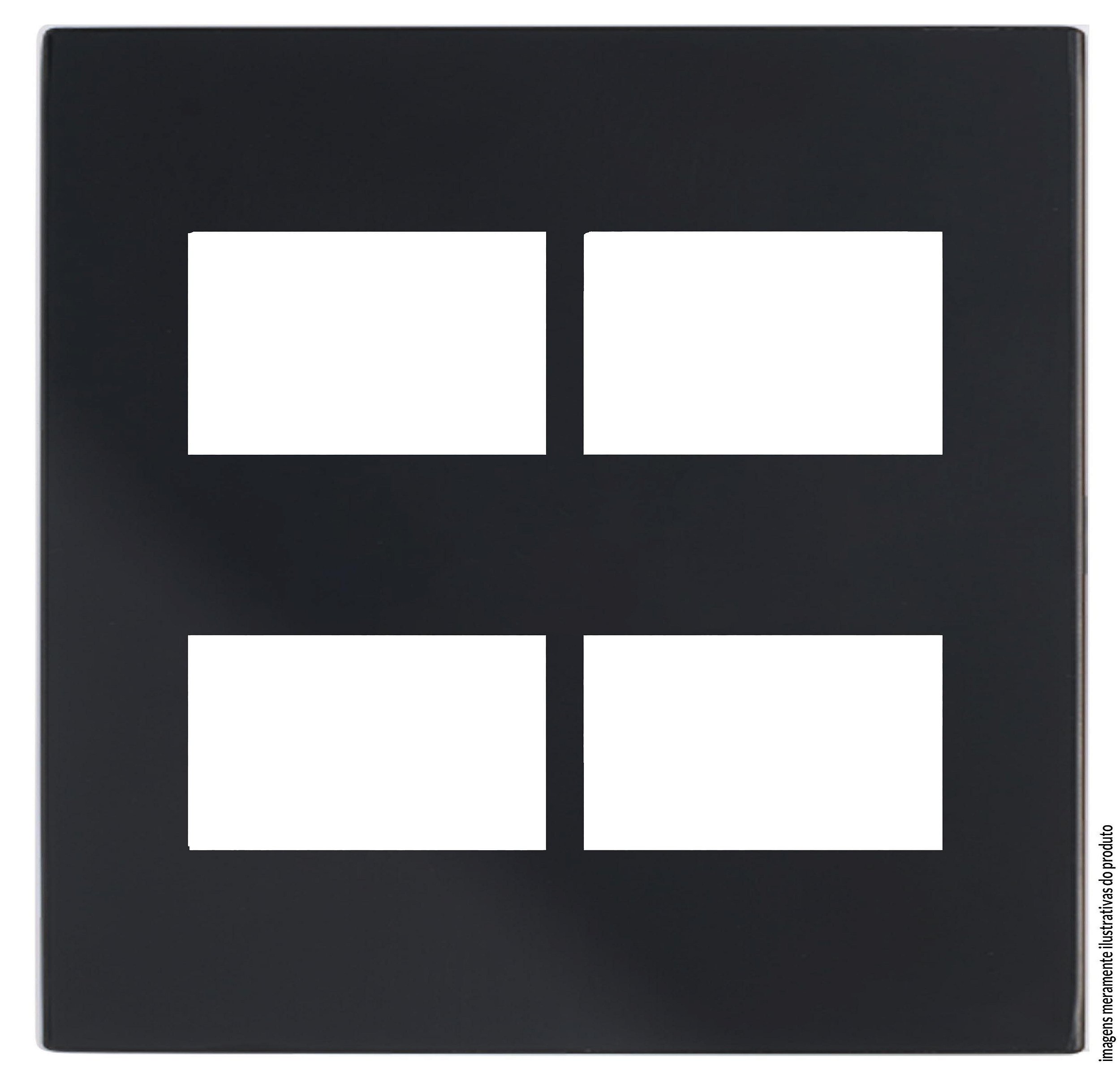 ANUNCIO CONTÉM: 1 - PLACA P/ 4 MODULOS SEPARADOS COM SUPORTE 4X4 - RECTA BLACK SATIN FOSCO - BRS12460-5BK. OU SEJA: 1 - PLACA P/ 4 MODULOS SEPARADOS SEM SUPORTE 4X4- RECTA BLACK SATIN FOSCO - BRS12460-5BK 1 - SUPORTE 6 MÓDULOS 4X4 - BLUX HOME - BH10421-3 DESCRIÇÃO DO PRODUTO: Inovando nas cores, acabamentos e possibilidades de combinações infinitas, a Recta ainda possui as exclusivas 4 entradas independentes para fios e cabos, sistema de prensa cabos e aditivo de proteção para raios UV, além da garantia de 15 anos, que só a B.Lux oferece. Placas Foscas e módulos semi-brilho compatíveis com Blux HOME.