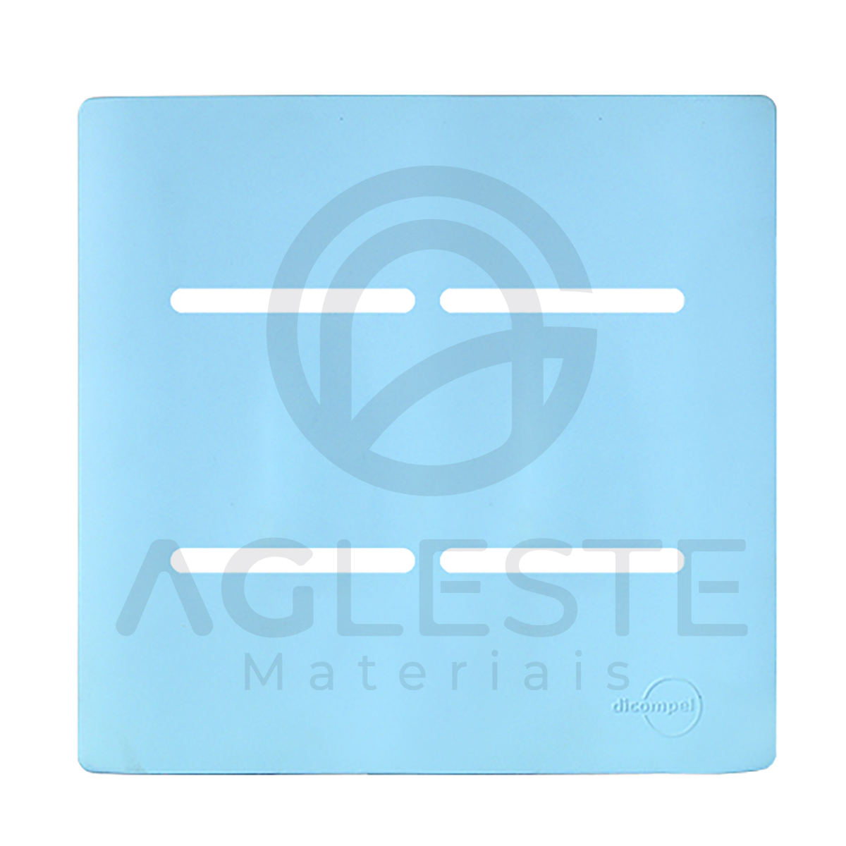 ANUNCIO CONTÉM: 1. PLACA P/ 4 INTERRUPTORES HORIZONTAIS COM SUPORTE (ESPECIAL) 4X2 - DICOMPEL NOVARA CELESTE - DNV1500/190CL DETALHES DO PRODUTO: OBS: PARA COMPOR UM CONJUNTO É NECESSARIO EFETUAR A COMPRA DE MODULOS DUPLOS (ESPECIAIS) Com um design fantástico, minimalista e de fácil instalação a DICOMPEL inovou no mercado de tomadas e interruptores modulares. A linha novara conta com uma pintura cromada automotiva, assim não descasca e nem perde sua cor. Seus interruptores, pulsadores, conjugados e tomadas dão 5 anos de garantia. SEMPRE TEM UMA NOVARA QUE COMBINA COM O QUE VOCÊ DESEJA;