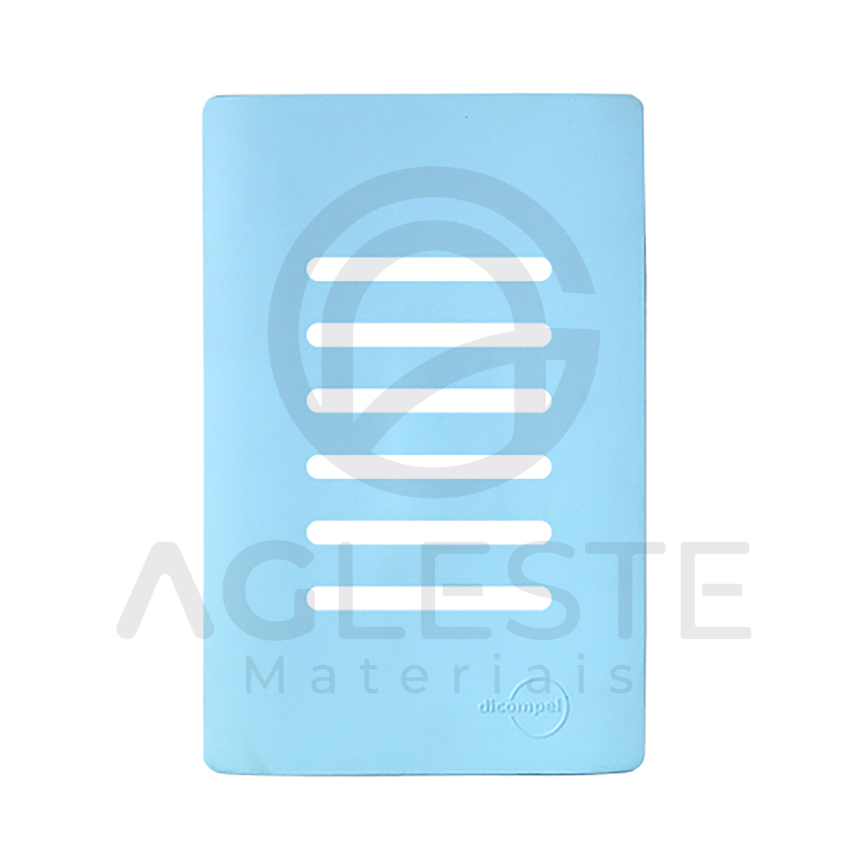 ANUNCIO CONTÉM: 1. PLACA P/ 6 INTERRUPTORES COM SUPORTE (ESPECIAL) 4X2 - DICOMPEL NOVARA CELESTE - DNV1500/191CL DETALHES DO PRODUTO: OBS: PARA COMPOR UM CONJUNTO É NECESSARIO EFETUAR A COMPRA DE MODULOS DUPLOS (ESPECIAIS) Com um design fantástico, minimalista e de fácil instalação a DICOMPEL inovou no mercado de tomadas e interruptores modulares. A linha novara conta com uma pintura cromada automotiva, assim não descasca e nem perde sua cor. Seus interruptores, pulsadores, conjugados e tomadas dão 5 anos de garantia. SEMPRE TEM UMA NOVARA QUE COMBINA COM O QUE VOCÊ DESEJA;