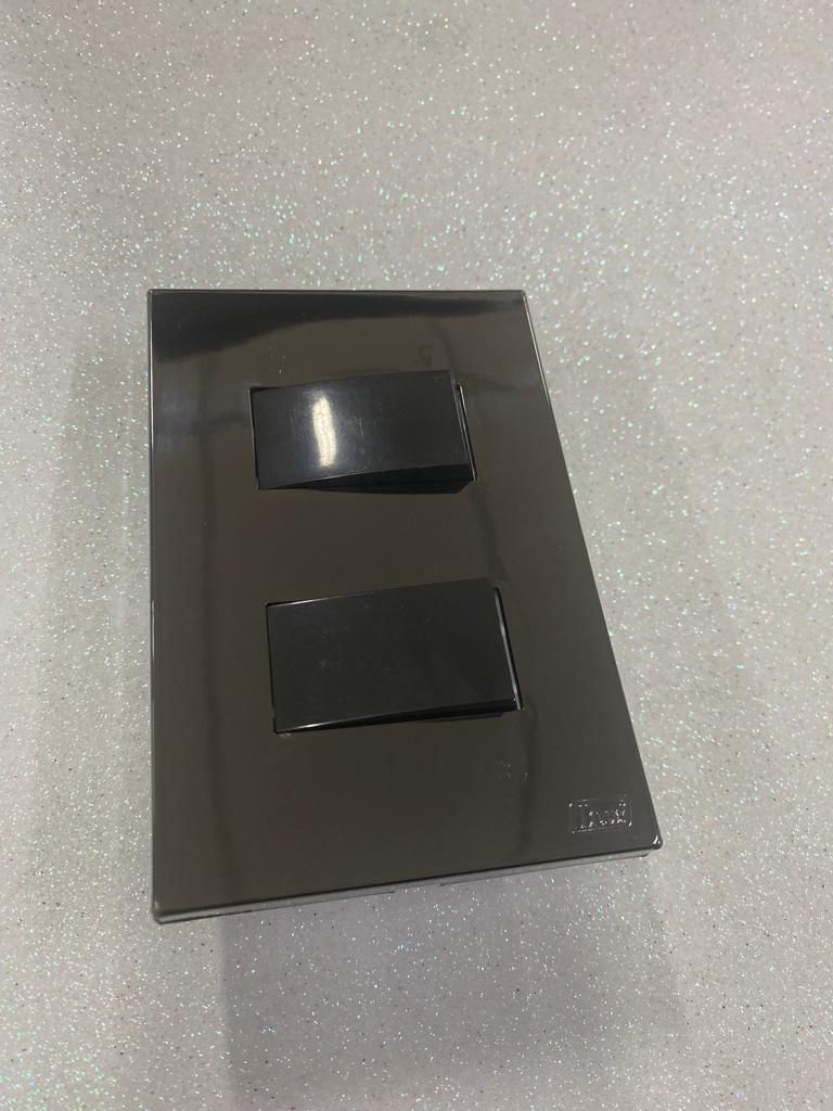 ANUNCIO CONTÉM: 1 - CJ INTERRUPTOR DUPLO ( 1 SIMPLES + 1 PARALELO) 4X2 - RECTA ESPELHADA FUME (MODULOS HOME GRAFITE) - BRG11034-5EF OU SEJA: 1 - SUPORTE 3 MÓDULOS 4X2 - BLUX HOME - BH10420-5 1 - PLACA P/ 2 MODULOS SEPARADOS SEM SUPORTE 4X3 - RECTA ESPELHADA FUME - BRG11538-1EF 1 -MÓDULO INTERRUPTOR SIMPLES - BLUX HOME/RECTA GRAFITE - BH10349-7GF 1- MODULO INTERRUPTOR PARALELO - BLUX HOME/RECTA GRAFITE - BH10352-7GF DETALHES DO PRODUTO: Inovando nas cores, acabamentos e possibilidades de combinações, a Recta ainda possui as exclusivas 4 entradas independentes para fios e cabos, sistema de prensa cabos e aditivo de proteção para raios UV, além da garantia de 15 anos, que só a B.Lux oferece.