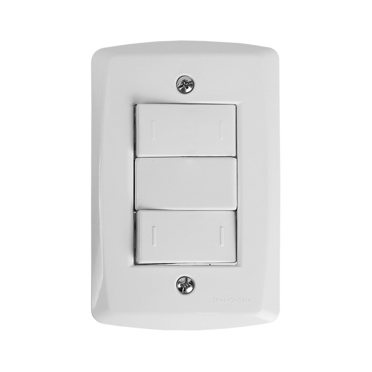 ANUNCIO CONTÉM: 1 - CJ INTERRUPTOR DUPLO PARALELO BRANCO 4X2 - TRAMONTINA LUX2 - TLX57145041BR OU SEJA: 1 - LACA P/ 2 MODULOS SEPARADOS BRANCO 4X2 - TRAMONTINA LUX2 - TLX57105206BR 2 - MÓDULO INTERRUPTOR PARALELO BRANCO - TRAMONTINA LUX2/LIZ - TL57115008BR DESCRIÇÃO DO PRODUTO: Reunindo alta qualidade a linha Tramontina projeta inovações para atender aos mais elevados padrões de exigência dos consumidores. Oferecendo o melhor design, segurança e soluções técnicas para artefatos de instalações elétricas. A linha Tramontina lux2 oferece módulos largos, toque suave e silencioso em termoplástico e anti-chama. Tampa com parafusos aparentes e suporte incorporado e fácil fixação á parede.