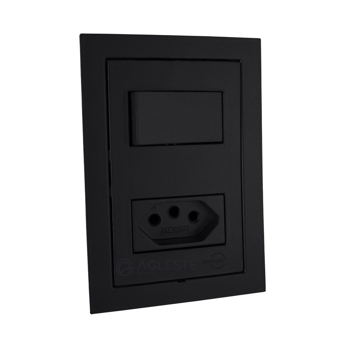 1.CJ INTERRUPTOR SIMPLES + TOMADA 10A 4X2 - DICOMPEL EKRON PRETO - EKP-30000-15