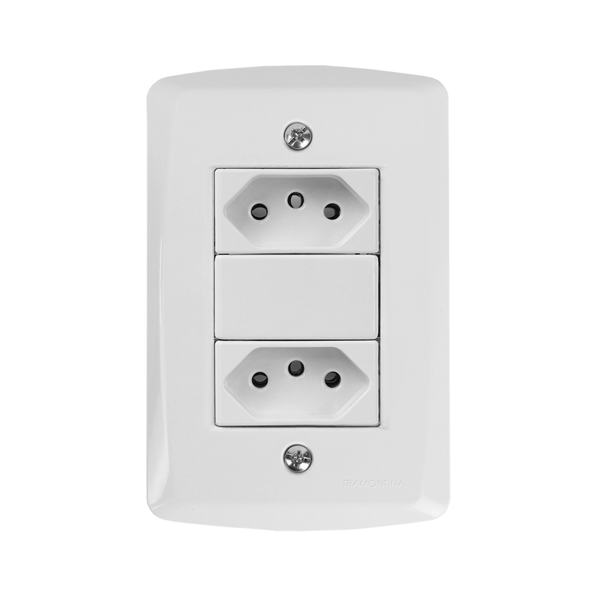 ANUNCIO CONTÉM: 1 - CJ TOMADA DUPLA 10A HORIZONTAL 4X2 - TRAMONTINA LUX2 - TLX57145265BR DESCRIÇÃO DO PRODUTO: Reunindo alta qualidade a linha Tramontina projeta inovações para atender aos mais elevados padrões de exigência dos consumidores. Oferecendo o melhor design, segurança e soluções técnicas para artefatos de instalações elétricas. A linha Tramontina lux2 oferece módulos largos, toque suave e silencioso em termoplástico e anti-chama. Tampa com parafusos aparentes e suporte incorporado e fácil fixação á parede.